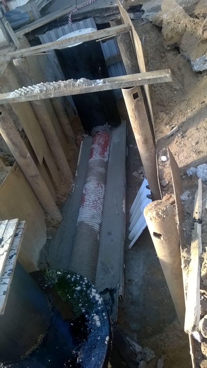 устройство траншей под прокладку трубопровода открытым способом (глубина 4,5м, длина - 15м), устройство крепления (стальная труба, швеллер);